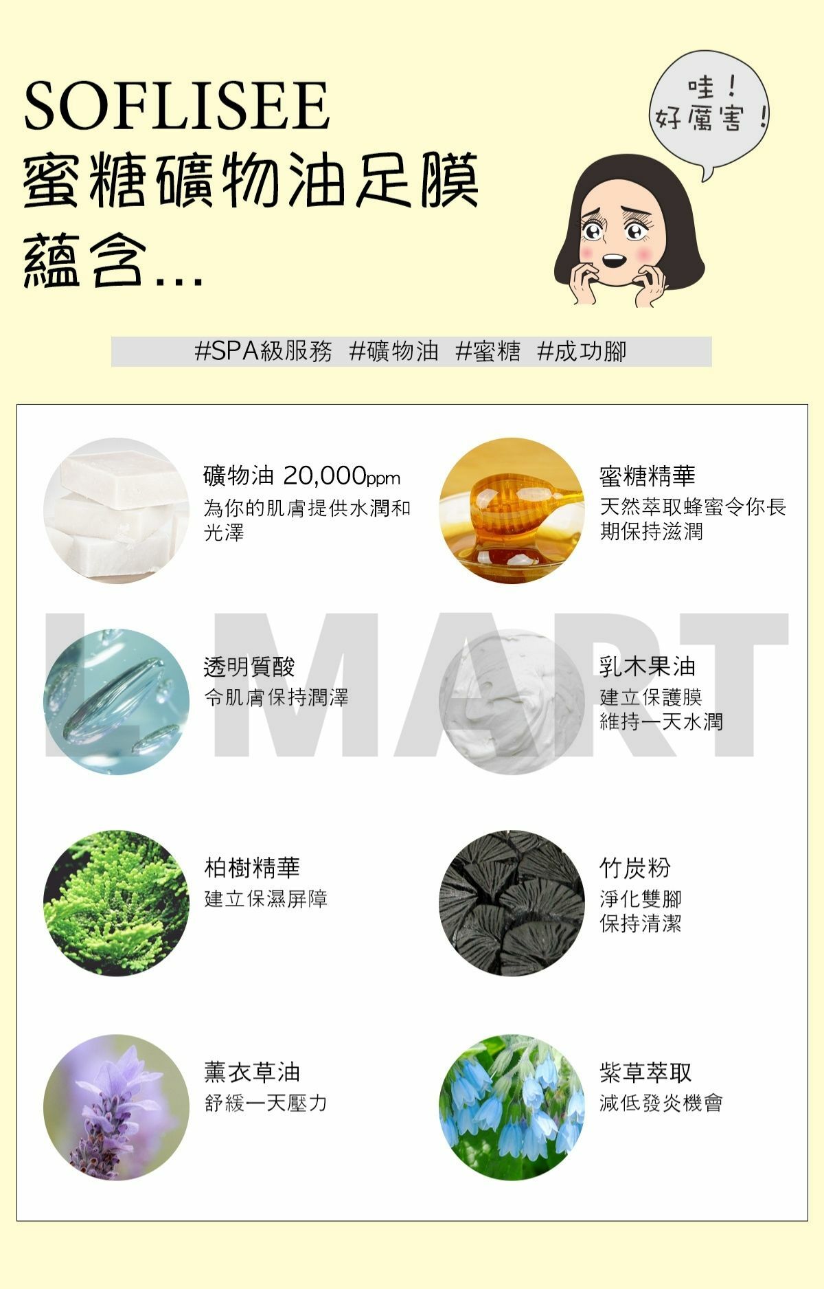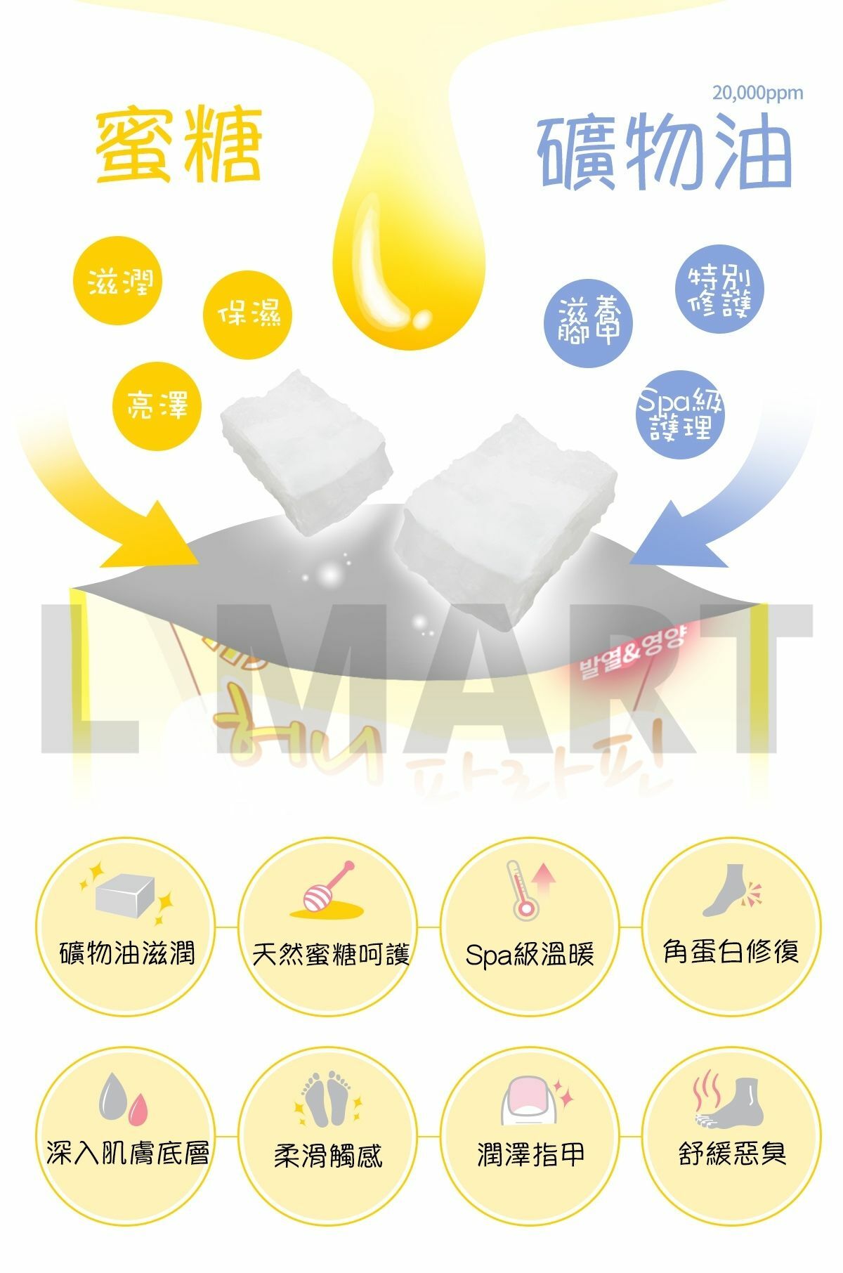 -蘊含20,000 ppm 礦物質及蜂蜜精華, 熱力即時放鬆雙腳, 促進雙腳血液循環