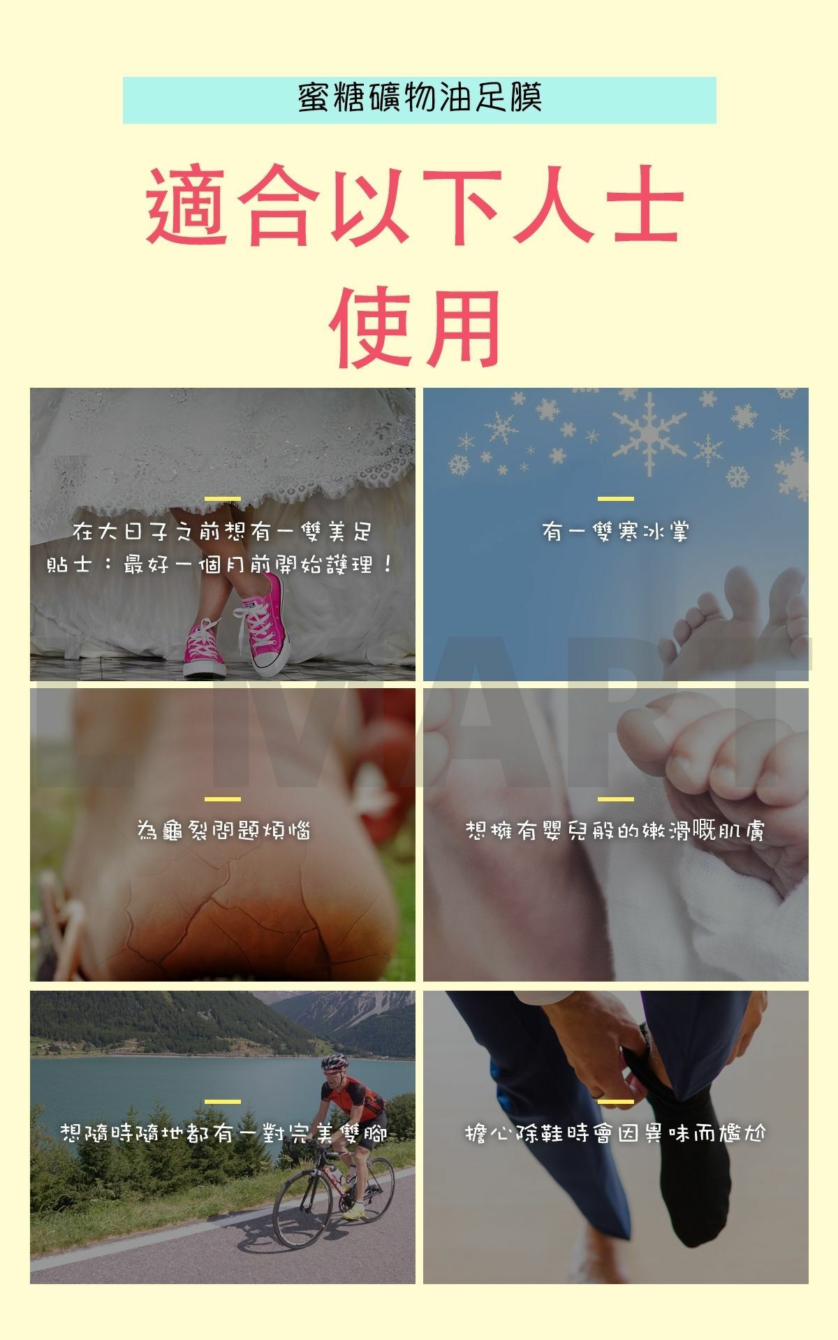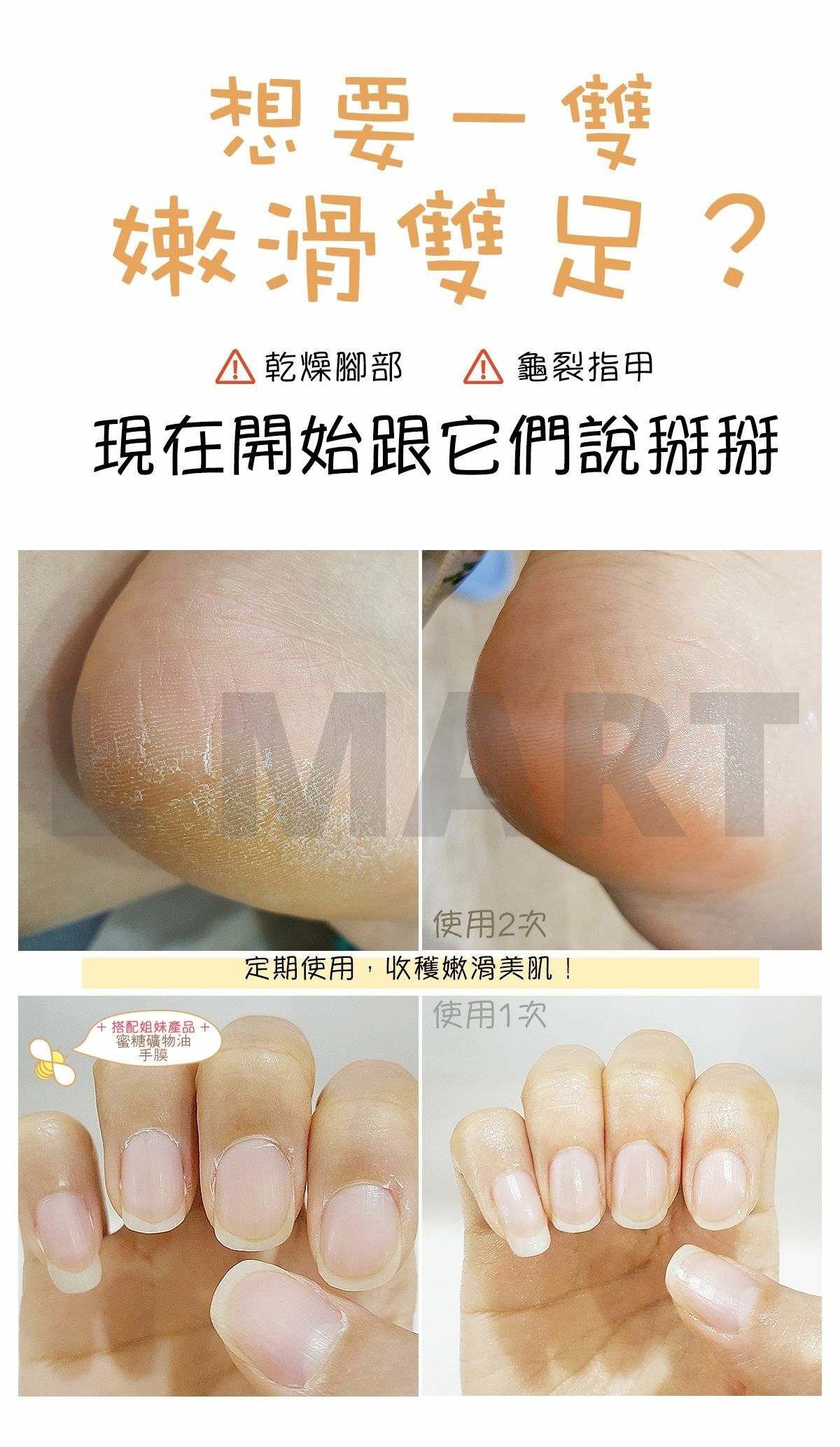 -蜂蜜天然保濕成分精華即時修護乾裂腳跟,去除硬皮,有助於舒緩和緩解皮膚水分,並阻止水分蒸發使其變得濕潤,滋養雙腳 亦可去除腳臭。